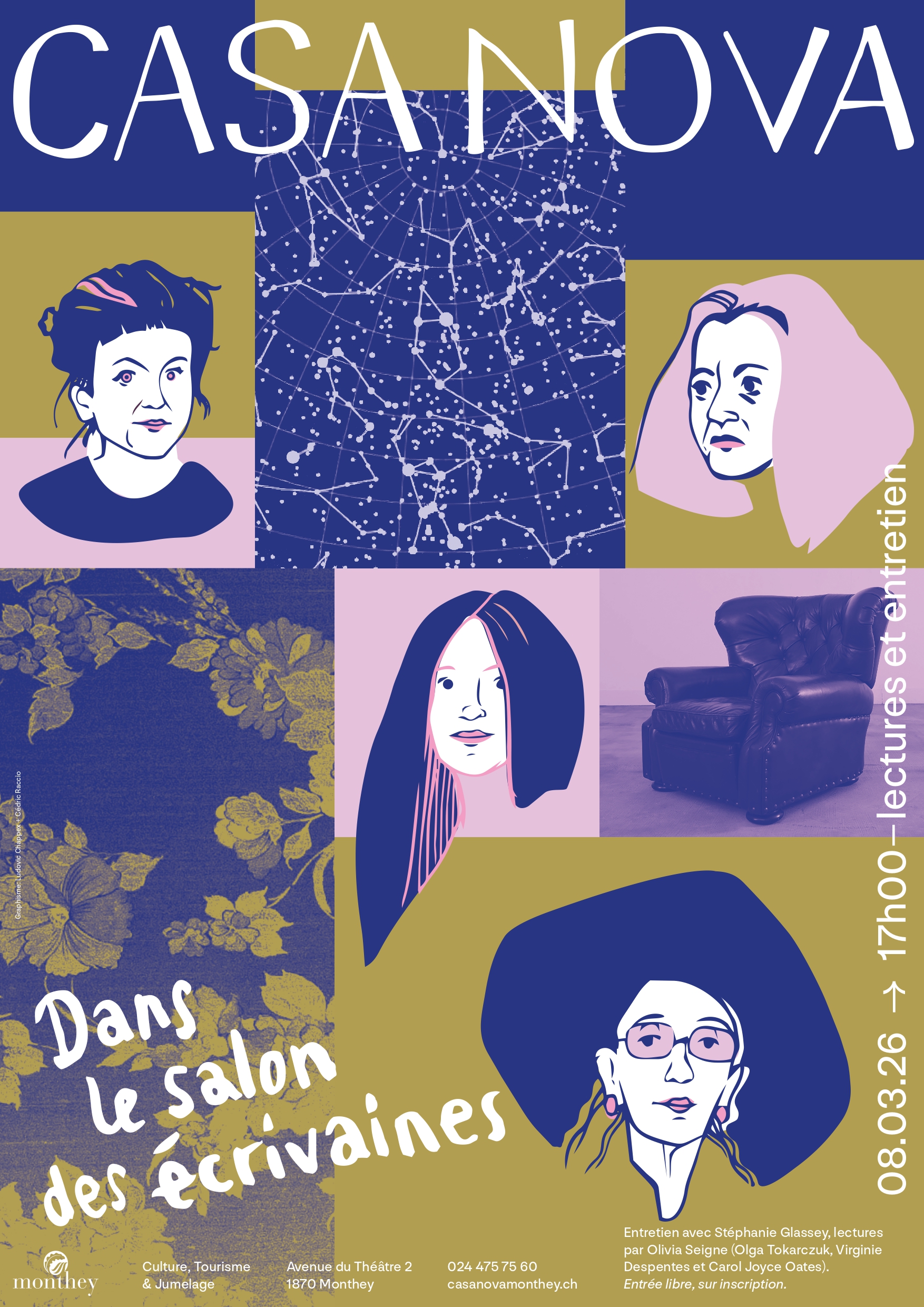 La rencontre débutera par un entretien avec l’écrivaine valaisanne Stéphanie Glassey, auteure de romans policiers et fantastiques, qui lira des extraits de son livre L’éventreuse. La comédienne Olivia Seigne lira également des passages d’autrices renommées, comme Olga Tokarczuk, Virginie Despentes et Joyce Carol Oates.